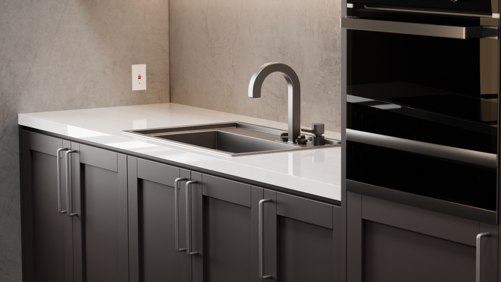Whether featured in slab or shaker-style doors, Dark Grey’s versatility allows for seamless integration into both modern and transitional designs. The super matte finish ensures a sleek, durable surface that adds a touch of elegance to high-traffic spaces.